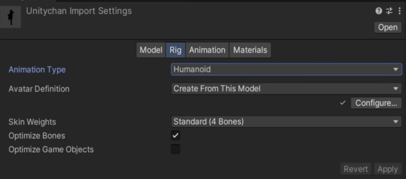 - Optimize Game Objects 在Avatar和Animatior组件中删除导入游戏角色对象的变换层级结构,而使用Unity动画内部结构骨骼,消减骨骼transform带来的性能开销 可以提高动画角色性能,但有些情况下会造成角色动画错误,这个选项可以尝试开启但要看表现效果而定。注意如果你的角色是可以换装的,在导入时不要开启此选项,但在换装后在运行时代码中通过调用 AnimatorUtility.OptimizeTransformHierarchy接口仍然可以达到此选项效果。